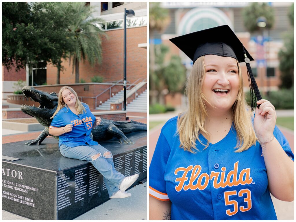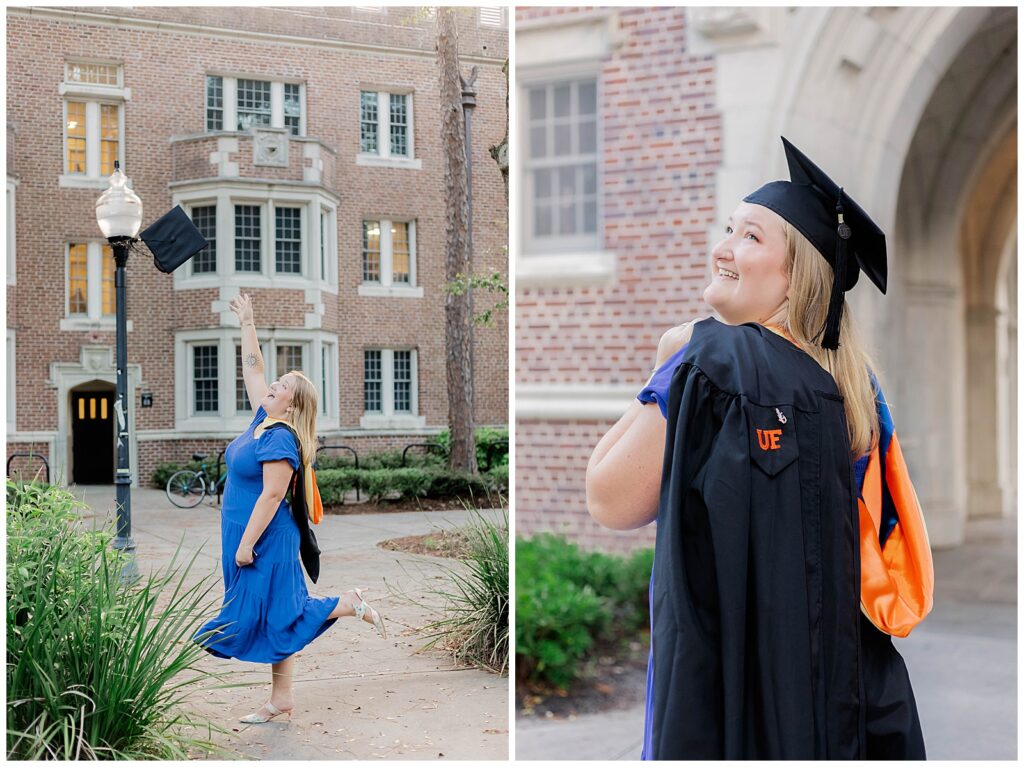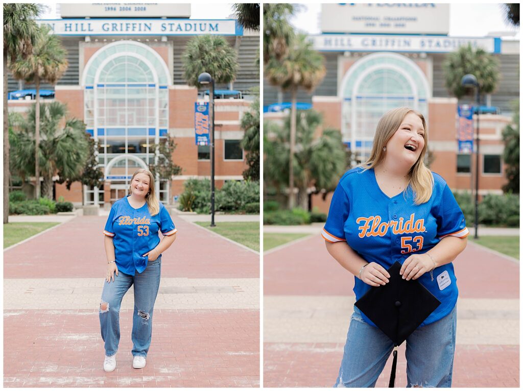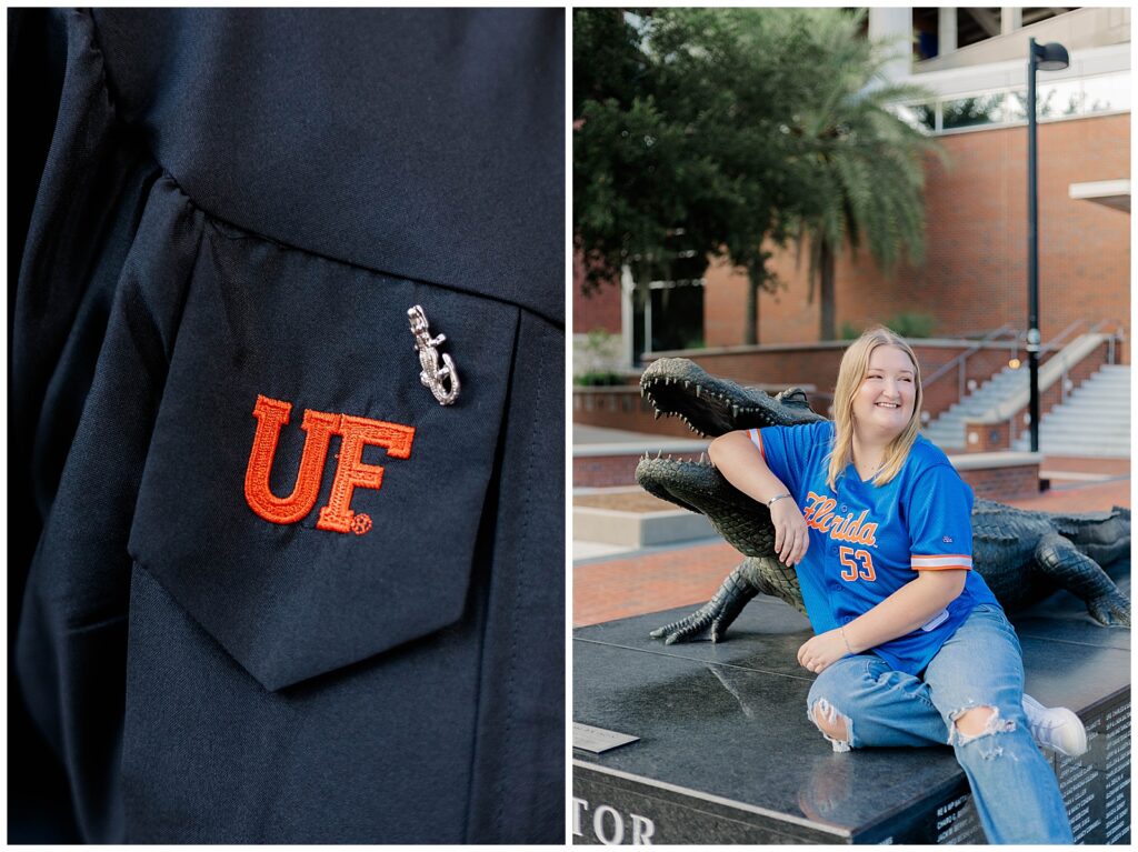 Caitlynne’s University of Florida grad session was the perfect mix of school pride, personality, and celebration. Shot on campus during the summer, this session captured both the iconic landmarks of the University of Florida and the joy that comes with reaching such a meaningful milestone.