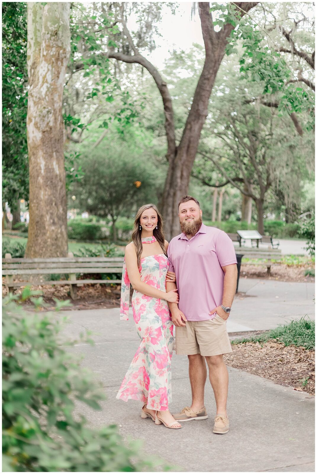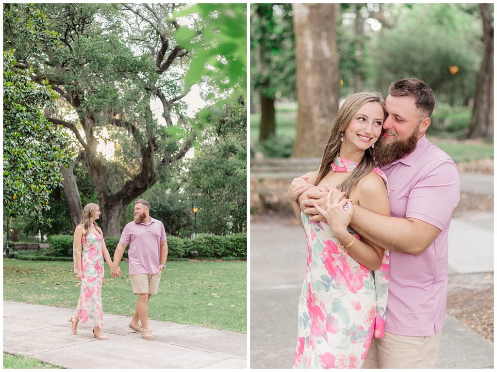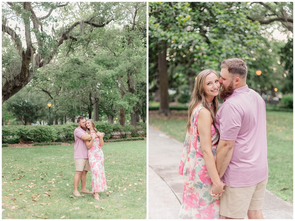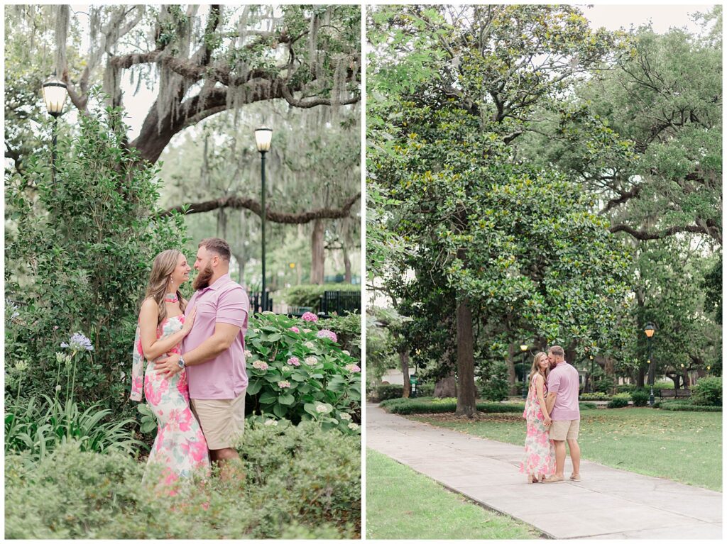 Their story began through mutual friends and they officially started dating in November 2020. Since then, they have built a relationship rooted in simple joys like trying new restaurants together. That ease and comfort showed throughout this Forsyth Park engagement session.