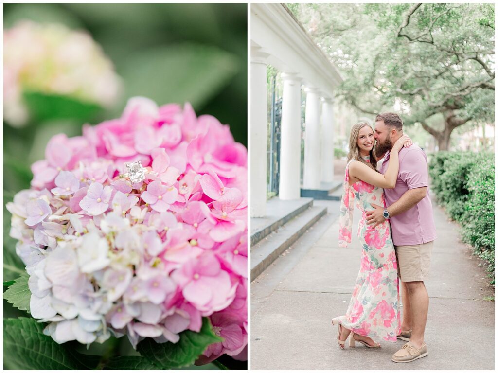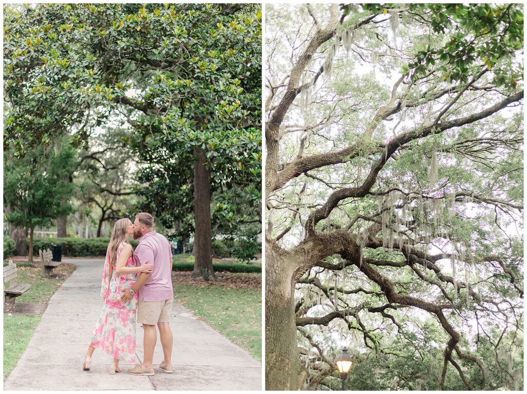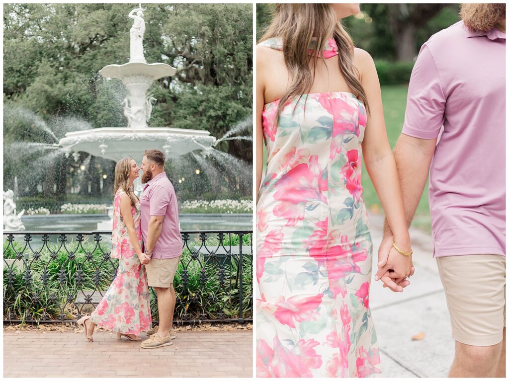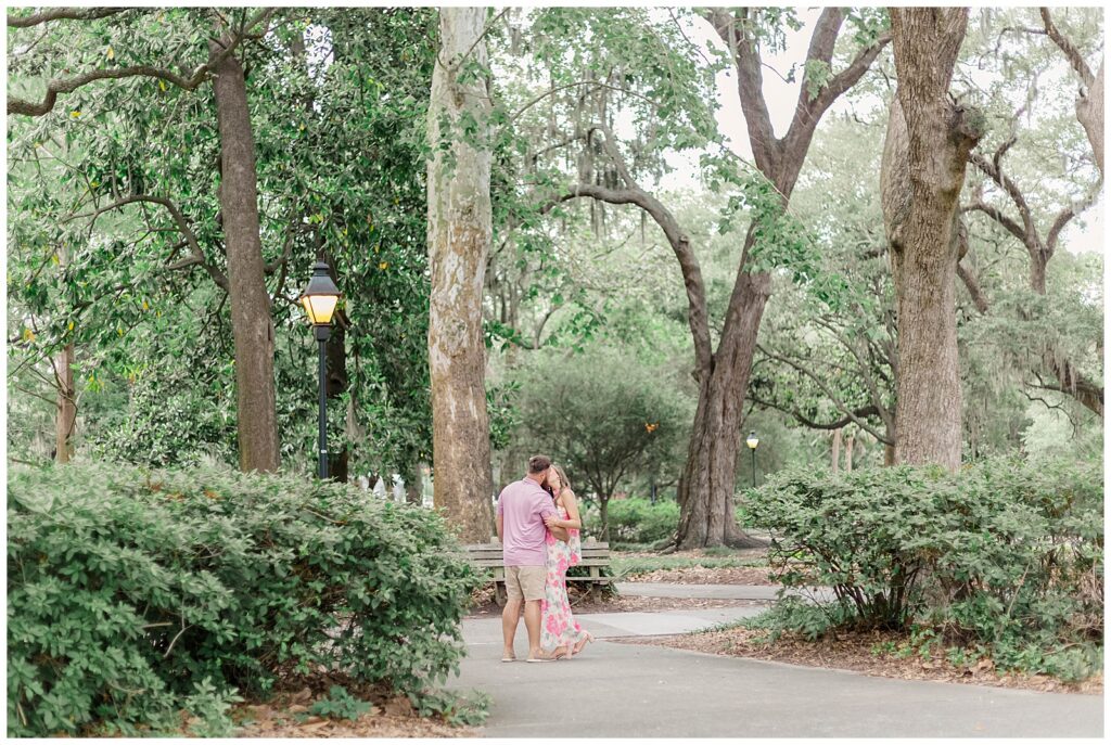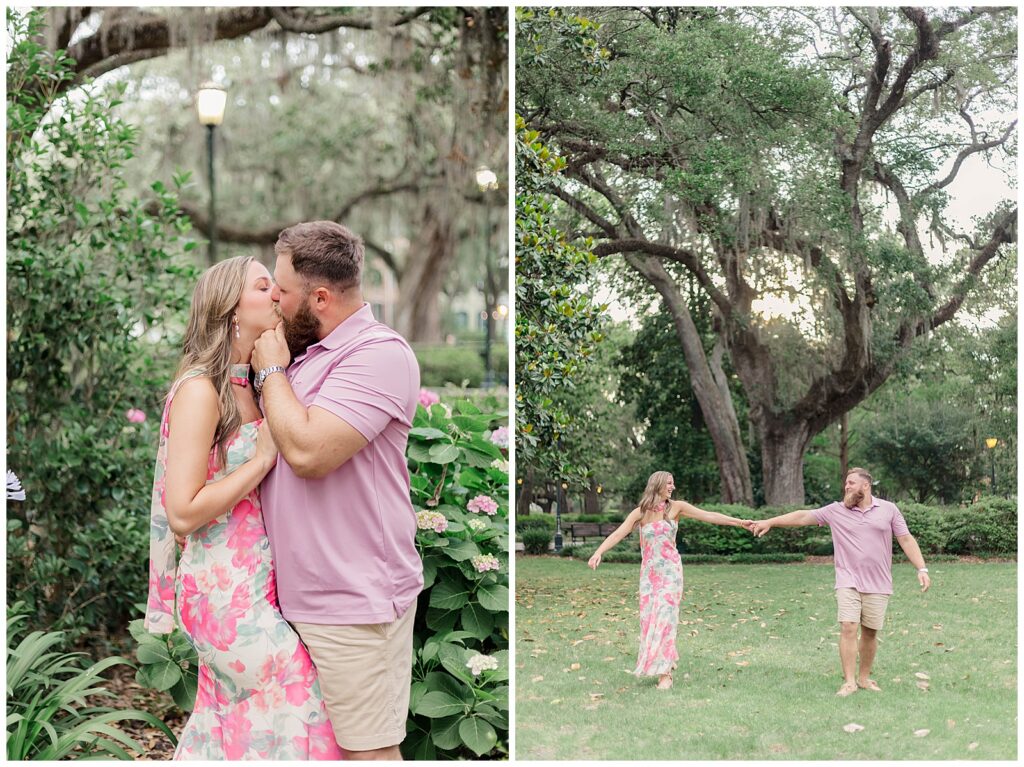 Their story began through mutual friends and they officially started dating in November 2020. Since then, they have built a relationship rooted in simple joys like trying new restaurants together. That ease and comfort showed throughout this Forsyth Park engagement session.